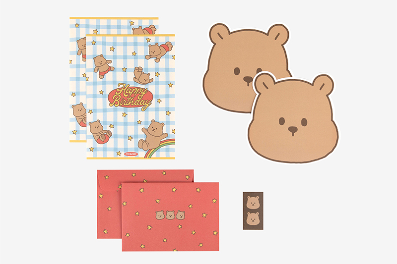 ¸¶ÀÌ ¹öµð ¸ð¾ç ÆíÁöÁö´Â µÎ °¡Áö µðÀÚÀÎÀ» ¸¸³ªº¼ ¼ö ÀÖÀ¸¸ç, ÀÏ¹Ý ÆíÁöÁö 2Àå, ¸ð¾ç ÆíÁöÁö 2Àå, ºÀÅõ 2Àå, ½ºÆ¼Ä¿ 2°³·Î ±¸¼ºµÈ ÆíÁöÁöÀÔ´Ï´Ù. ÆíÁöÁö ¾Õ¸éÀº µ¥Àϸ®¶óÀÌÅ©ÀÇ ¸¶ÀÌ ¹öµð ij¸¯ÅÍ·Î ²Ù¸çÁ® ÀÖÀ¸¸ç, µÞ¸é¿¡´Â ¼ÒÁßÇÑ ¸¶À½À» °í½º¶õÈ÷ ´ãÀ» ¼ö ÀÖµµ·Ï